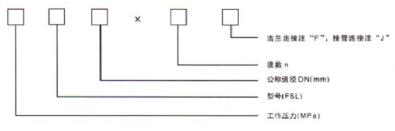 舉例:0.6TNY500TF 表示:公稱通徑為Φ500,工作壓力為0.6MPa,(6kg/cm2)波數(shù)為4個(gè),帶導(dǎo)流筒,碳鋼法蘭連接的內(nèi)壓式波紋補(bǔ)償器。